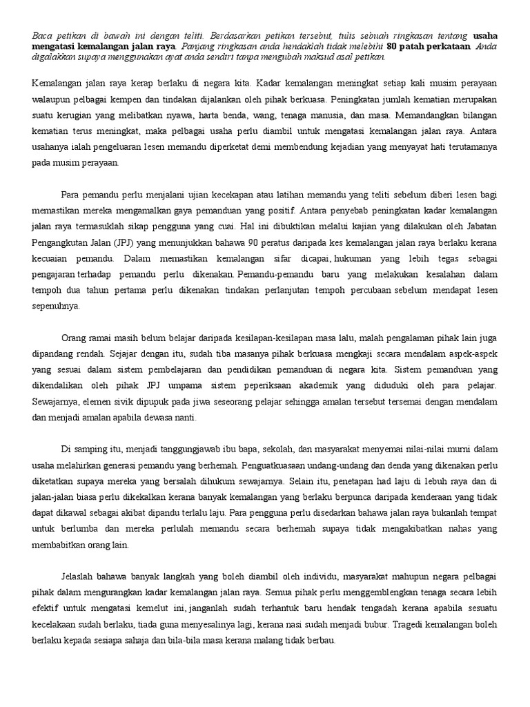 Karangan Langkah Langkah Meningkatkan Tahap Keselamatan Di Jalan Raya Gallery Baru